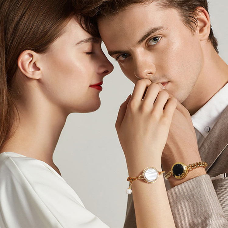 دستبند هوشمند توتو صدفی (زنجیر طلایی کوبایی + زنجیره طلایی فیگارو)