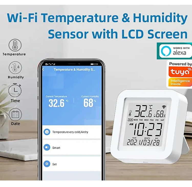 دماسنج و رطوبت سنج داخلی با نمایشگر LCD می باشد. تا زمانی که دستگاه ها با برنامه Tuya/Smart Life سازگار باشند، می توانید دستگاه های هوشمند بیشتری را همگام سازی کنید. دارای طراحی منحصر به فرد می باشد که با باتری فعال می شود. قدرت دماسنج و رطوبت سنج WIFI بالا می باشد. از آنجایی که به WIFI متصل است، در شرایط عادی از سنسورهای دما و رطوبت 24 ساعته استفاده می شود، باتری به زودی تمام نمی شود. امکان به روز رسانی لحظه ای دما و رطوبت را فراهم می کند. مانیتور رطوبت وای فای در داخل و خارج از منزل قابل استفاده است. مناسب برای سالمندان، کودکان، حیوانات خانگی، مراقبت از دام و زنبورداری، آبجو، شراب و ارواح، گیاهان، مزارع از جمله بذر و پیاز، زیرزمین، گلخانه و حتی هر گیاه یا مزرعه می باشد. پروتکل وای فای 2.4 گیگاهرتز می باشد. محدوده اندازه گیری دما 0-60 ℃ می باشد. دقت دما: ± 1℃می باشد. محدوده اندازه گیری رطوبت 0٪ RH ~ 99٪ IRH می باشد. دقت رطوبت ± 5% RH می باشد