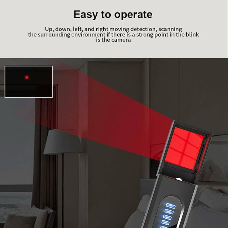 میتواند دوربینهای مخفی و دستگاههای شنود را با اسکن منطقه و تشخیص سیگنالهای رادیویی یا نور مادون قرمز شناسایی کند.