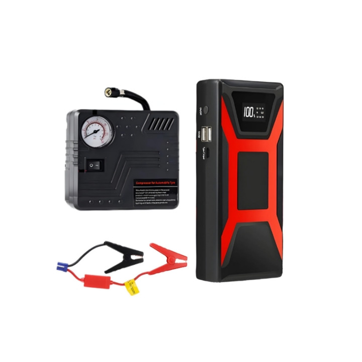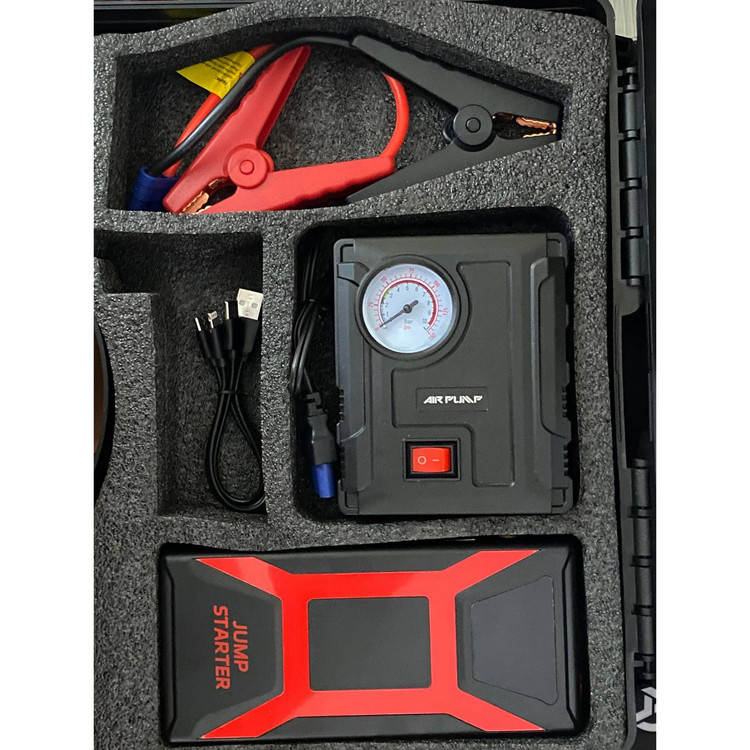 این محصول یک مجموعهی چندکاره شامل جامپ استارتر خودرو و پمپ باد همراه است که برای مواقع اضطراری در خودرو طراحی شده و بسیار کاربردی و قابل حمل است. جامپ استارتر دارای باتری قدرتمند قابل شارژ بوده و قابلیت روشن کردن خودروهای بنزینی و دیزلی را در مواقعی که باتری ماشین خالی شده دارد، همچنین مجهز به نمایشگر دیجیتال برای نشان دادن درصد شارژ، دو خروجی USB برای شارژ گوشی موبایل، تبلت و سایر دستگاهها و یک چراغ قوه LED برای استفاده در تاریکی است. در کنار آن، پمپ باد کوچک و سبک این مجموعه، با قابلیت اتصال به فندکی خودرو، امکان تنظیم و باد کردن تایر خودرو، موتورسیکلت، دوچرخه و توپهای ورزشی را فراهم میکند و دارای درجه فشارسنج دقیق برای کنترل باد است. این پک کامل، یک همراه مطمئن برای سفرها، شرایط اضطراری و استفاده روزمره در خودرو محسوب میشود.