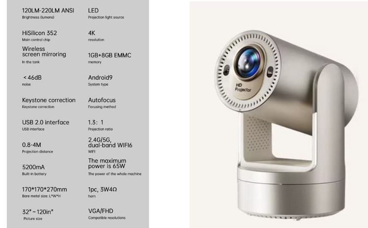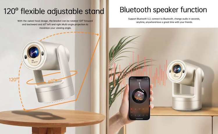 ویدیو پروژکتور 5G با ترکیب کیفیت تصویر بالا، سرعت اتصال بیسیم فوقالعاده و طراحی انعطافپذیر هد چند زاویهای، تجربهای بینظیر در نمایش فیلم، بازی، آموزش و ارائههای کاری به شما میدهد.
