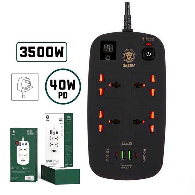 چندراهی برق و محافظ برق وشارژ گرین لاین مدلGNPS2PDBK