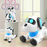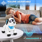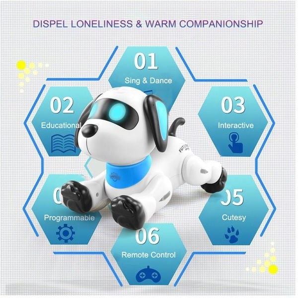 این محصول یک سگ روباتیک با کنترل از راه دور می باشد. این سگ به وسیله کنترل از راه دور هدایت و کلیه فرمان ها به وسیله کنترل از راه دور به آن داده می شود.این محصول عملکرد بسیار خوب و راحتی برای کودک فراهم می کند و به مشابه یک حیوان خانگی می توان با آن رفتار کرد.جنس پلاستیک آن از مواد بسیار عالی و درجه یک و بدون مواد سمی و ضد حساسیت است.حرکت در جهات مختلف و حالت های گوناگون به اضافه افکت های صوتی جالب یک محصول را بسیار سرگرم کننده و خلاقیتی برای کودک فراهم می کند.اندازه طول این سگ در حدود 18 سانتیمتر به ارتفاع 19 و عرض 11 سانتیمتر ساخته شده است.این سگ در پاها دارای موتور و یا جک های مختلف است که باعث می شود این سگ رباتیک حالتها و حرکات بدنی مختلفی را همانند نشستن و دور زدن ، چرخیدن ،رقصیدن و فرمان صوتی و کلی قابلیت دیگر را اجرا می نماید.همچنین چشم های این سگ قابلیت روشن شدن دارن.دارای فرمان صوتی است که با دست زدن شروع به رقصیدن می کند. این دستگاه بصورت شارژی می باشد و با یک رابط شارژ که درون بسته قرار دارد شارژ می شود.