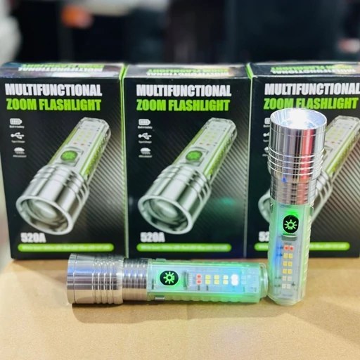 جنس بدنه این چراغ قوه آلیاژ آلومینیوم مقاوم بوده و از یک باطری شارژی 3٫7 ولتی بهره می برد.