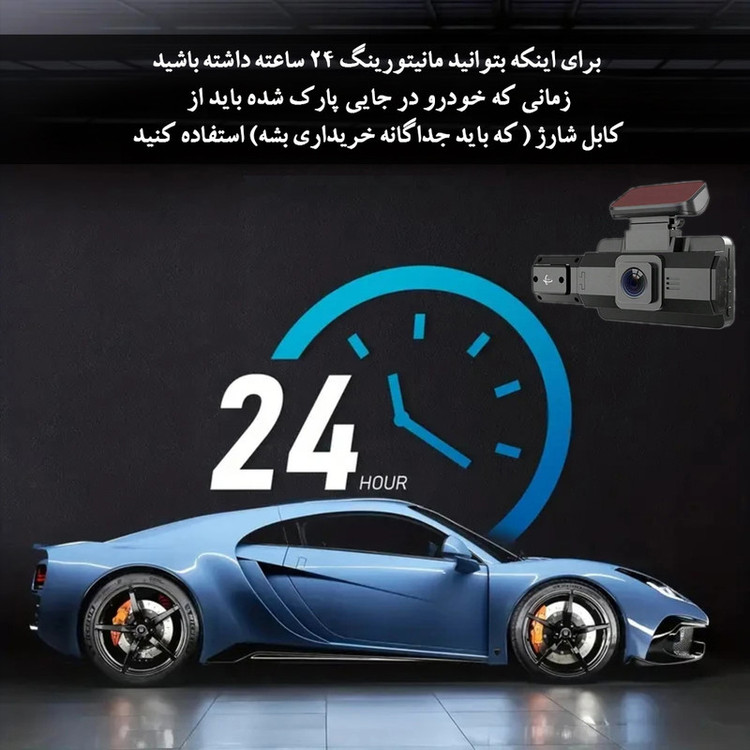 از طرف دیگر، برای مانیتورینگ 24 ساعته هنگام پارک خودرو، میتوانید از کابل شارژ ویژه 2-2.5A (باید جداگانه خریداری شود) استفاده نمایید.