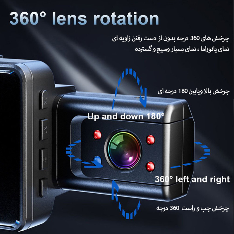 از مهمترین ویژگیهای این دوربین خودرو (Car DVR) میتوان به امکان دید در شب (مادون قرمز)، وجود نمایشگر 3 اینچی، زاویه دید 170 درجه، امکان ضبط حلقوی (Loop)، سنسور جی (G-Sensor)، امکان مانیتورینگ 24 ساعته هنگام پارک (در صورت خرید جداگانه کابل شارژ)، وجود میکروفون داخلی، سازگار با کارت حافظه TF و … اشاره نمود. از دوربین دید در شب میتوان برای ثبت کلیه وقایع در حین رانندگی، ثبت رفتار رانندگان متخلف، جلوگیری از رانندگی غیر مجاز و سرقت، دریابی مسیر و … استفاده نمود.