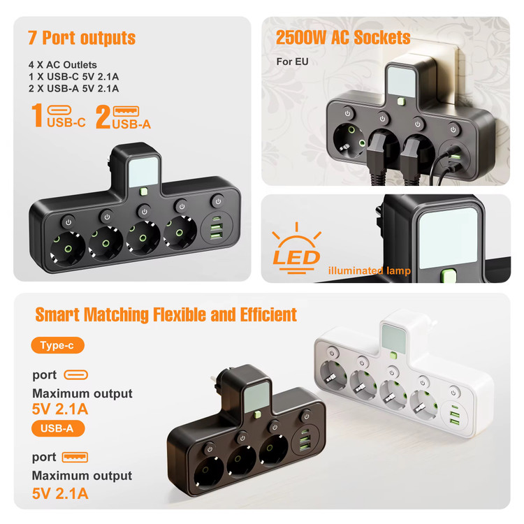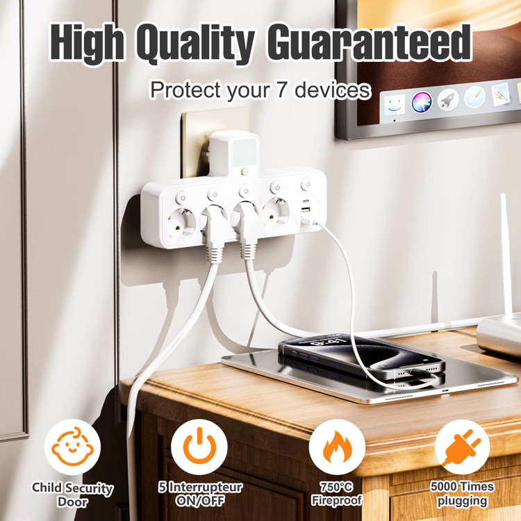 چندراهی برق حرفهای با طراحی کاربردی و ایمن که مناسب استفاده در خانه، دفتر، اتاق کار، آشپزخانه و محیطهای آموزشی و تجاری است. این محصول به شما این امکان را میدهد تا همزمان چند دستگاه الکترونیکی را به برق و پورتهای شارژ USB متصل کنید، بدون نیاز به تبدیلهای متعدد یا آداپتورهای جداگانه.