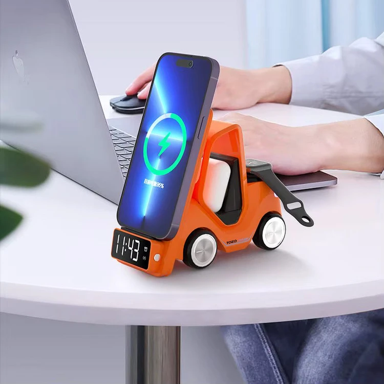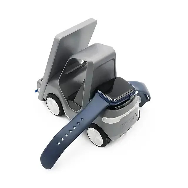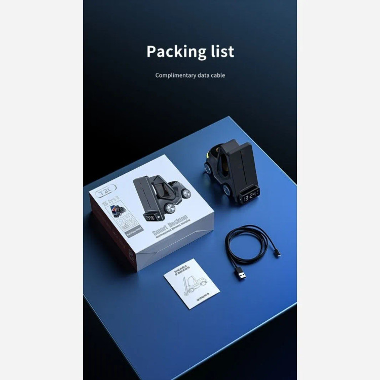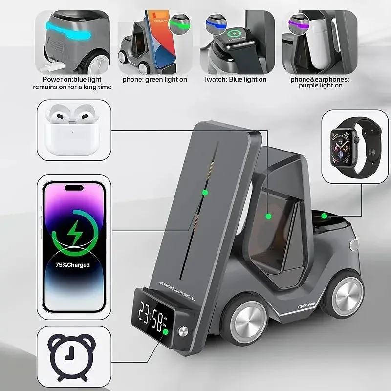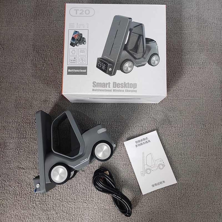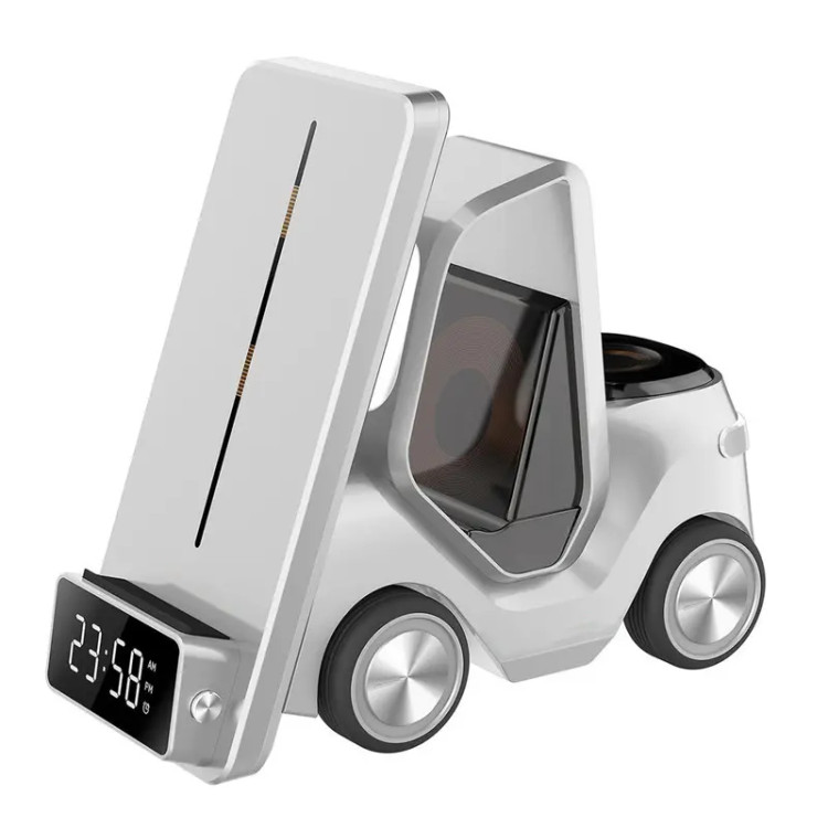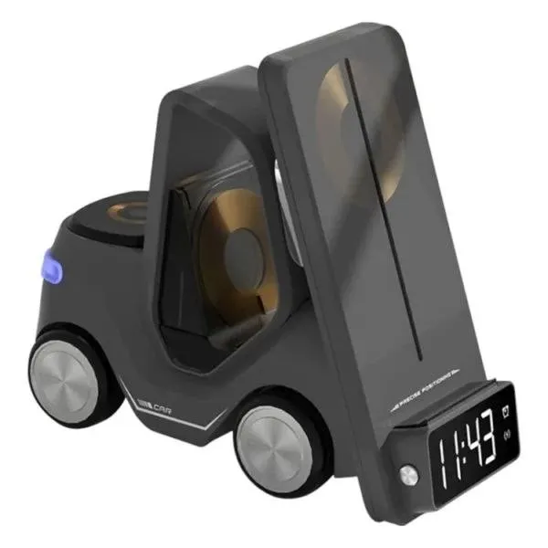 این محصول یک شارژر بی سیم بسیار باکیفیت است که بطور ویژه برای ست آیفون طراحی شده و قسمت شارژ موبایل آن برای گوشی های سامسونگ که دارای فناوری شارژ وایرلس هستند نیز قابل استفاده است. این دستگاه علاوه بر شارژ گوشی موبایل، ایرپاد، و ساعت دارای ساعت دیجیتال ( جلوی دستگاه) و نور شب (پشت دستگاه) نیز هست. ابعاد: 15.6×7.4×14.6 سانتی متر