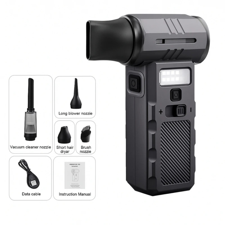 جت فن مدل MULTI-FUNCTIONAL جارویی چراغدار یک فن قدرتمند با قایلیت تنظیم سرعت پیوسته، شارژ سریع Type-C نور هشدار قرمز COB. این محصول با طراحی مقاوم و لوازم جانبی متنوع، مناسب برای کمپینگ، تعمیرات و شرایط اضطراری می باشد. این مدل دارای قابلیت مکنده و سری برای نظافت و جارو کردن هم قابل استفاده میباشد.