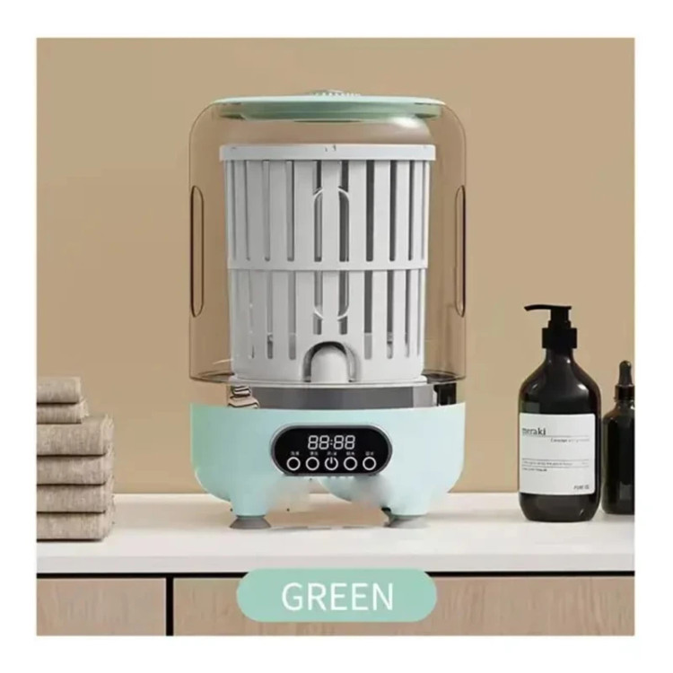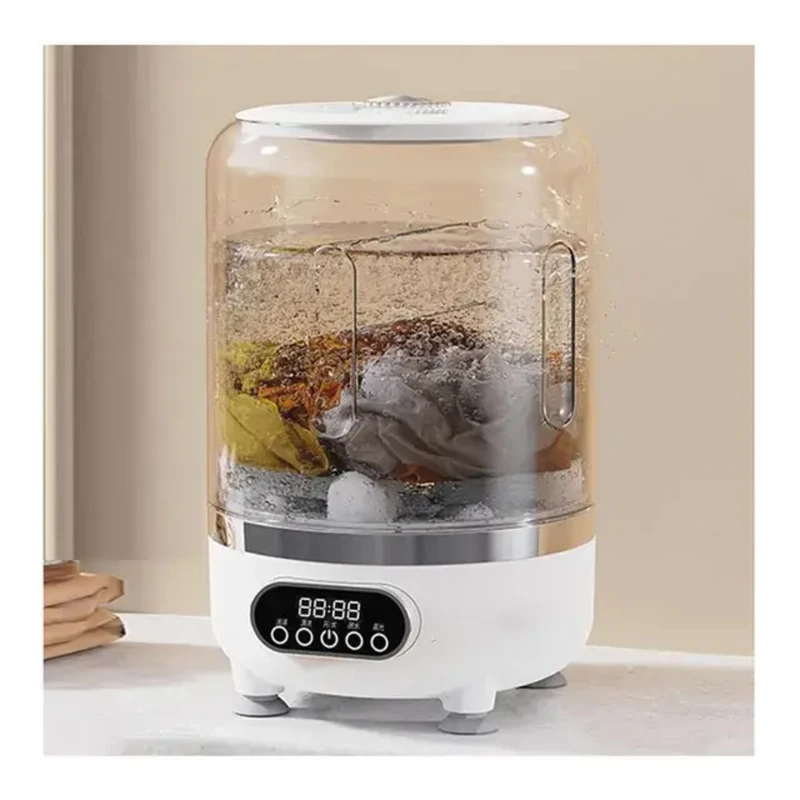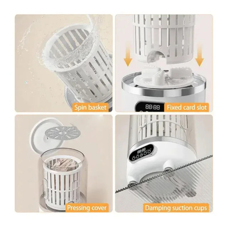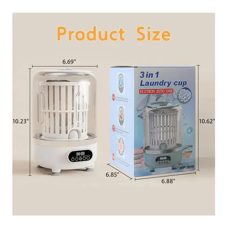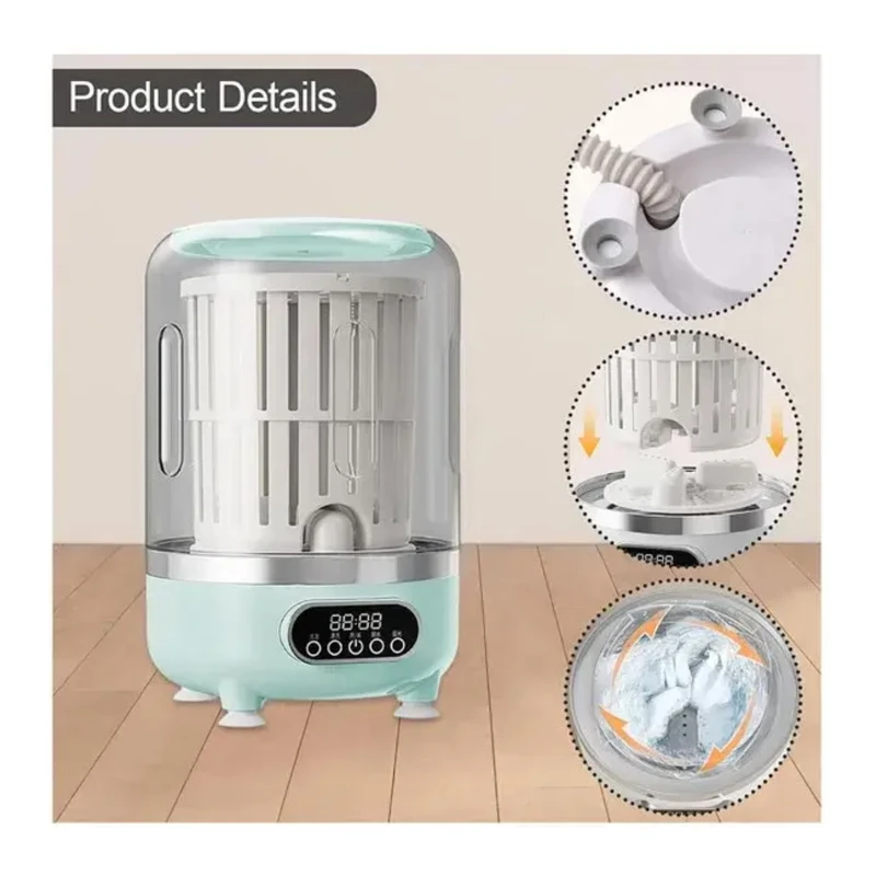 جمعوجور، مصرف انرژی کم و قابلیت شارژ شدن، امکان شستشو در خانه، سفر، خوابگاه و هر محیطی را فراهم میکند. این دستگاه سه حالت شستشو، آبکشی و خشککردن را در یک سیستم واحد ارائه میدهد. در حالت شستشو، دستگاه به مدت پنج دقیقه لباسها را تمیز میکند و پس از انتخاب حالت آبکشی، مرحله دوم نیز طی همان مدت انجام میشود. در نهایت، حالت خشککردن سه دقیقهای، آب اضافی لباسها را میگیرد و آنها را نیمهخشک تحویل میدهد. علاوه بر این، دستگاه مجهز به نور آبی برای استریل کردن محیط داخلی است که سبب میشود لباسها علاوه بر شستشو، از نظر بهداشتی نیز در وضعیتی مطلوب قرار گیرند. مینیواش مدل HP-909 دارای یک باتری 3000 میلیآمپرساعتی قدرتمند است که از طریق کابل USB قابل شارژ میباشد. این ویژگی اجازه میدهد دستگاه بدون نیاز به برق مستقیم کار کند و پس از هر بار شارژ کامل، حدود پنج تا شش بار مورد استفاده قرار گیرد. ولتاژ نامی دستگاه 7.4 ولت و توان مصرفی آن حدود 12 وات است، بنابراین مصرف انرژی بسیار کمی دارد و برای محیطهایی که محدودیت برق دارند گزینهای ایدهآل است. برای جلوگیری از لرزش و جابهجایی، دستگاه به چهار پایه مکنده مجهز است که هنگام قرار گرفتن روی سطح صاف، آن را کاملاً ثابت نگه میدارند. این پایهها عملکرد دستگاه را روانتر کرده و باعث میشوند حتی در حین خشککردن که قدرت گردش بیشتر است، لرزشی ایجاد نشود. فرآیند تخلیه آب نیز بسیار ساده طراحی شده است. در پایین دستگاه یک لوله مخصوص وجود دارد که آب را بدون نیاز به بلند کردن دستگاه خارج میکند. همین ویژگی سبب میشود استفاده از دستگاه برای افراد مسن یا در شرایطی که امکان جابهجایی دستگاه وجود ندارد، بسیار آسانتر باشد.
