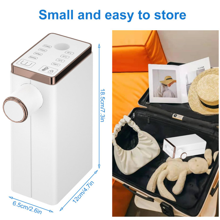 قابل حمل:اندازه کتری 25*15*7.5 سانتی متر و وزن آن فقط 0.8 کیلوگرم است. طراحی جمع و جور را می توان در هر جایی برد و برای گرم کردن سریع چای، قهوه فوری، پودر شیر، نودل فوری و غیره بسیار مناسب است.